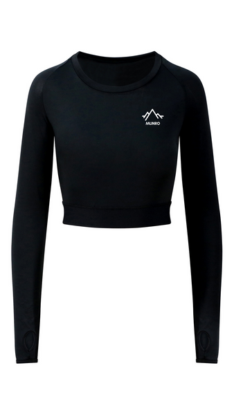 The Women's Long Sleeved Crop Top. Designed for when you're outdoors, these crop tops are fully breathable with wicking and quick-dry properties.